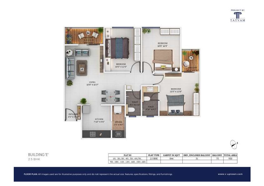 | Type 3 BHK Flats / Apartments | Carpet Area 1094 Sq.ft. | Price 1.10 Cr. | Floor Plan